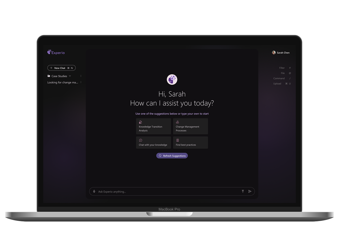 ExperioLabs is an Agentic AI solution designed specifically for consulting and professional services firms to transform knowledge chaos into intelligent actions. The platform features AI agents that provide instant, context-aware insights and maintains an 'Always-On Organizational Memory' that captures and curates institutional knowledge. With seamless integrations to popular business tools like OneDrive, Google Drive, Salesforce, and Microsoft Teams, ExperioLabs helps firms eliminate information inefficiencies, preserve critical knowledge, and enhance team productivity through contextual intelligence across their collective experience.